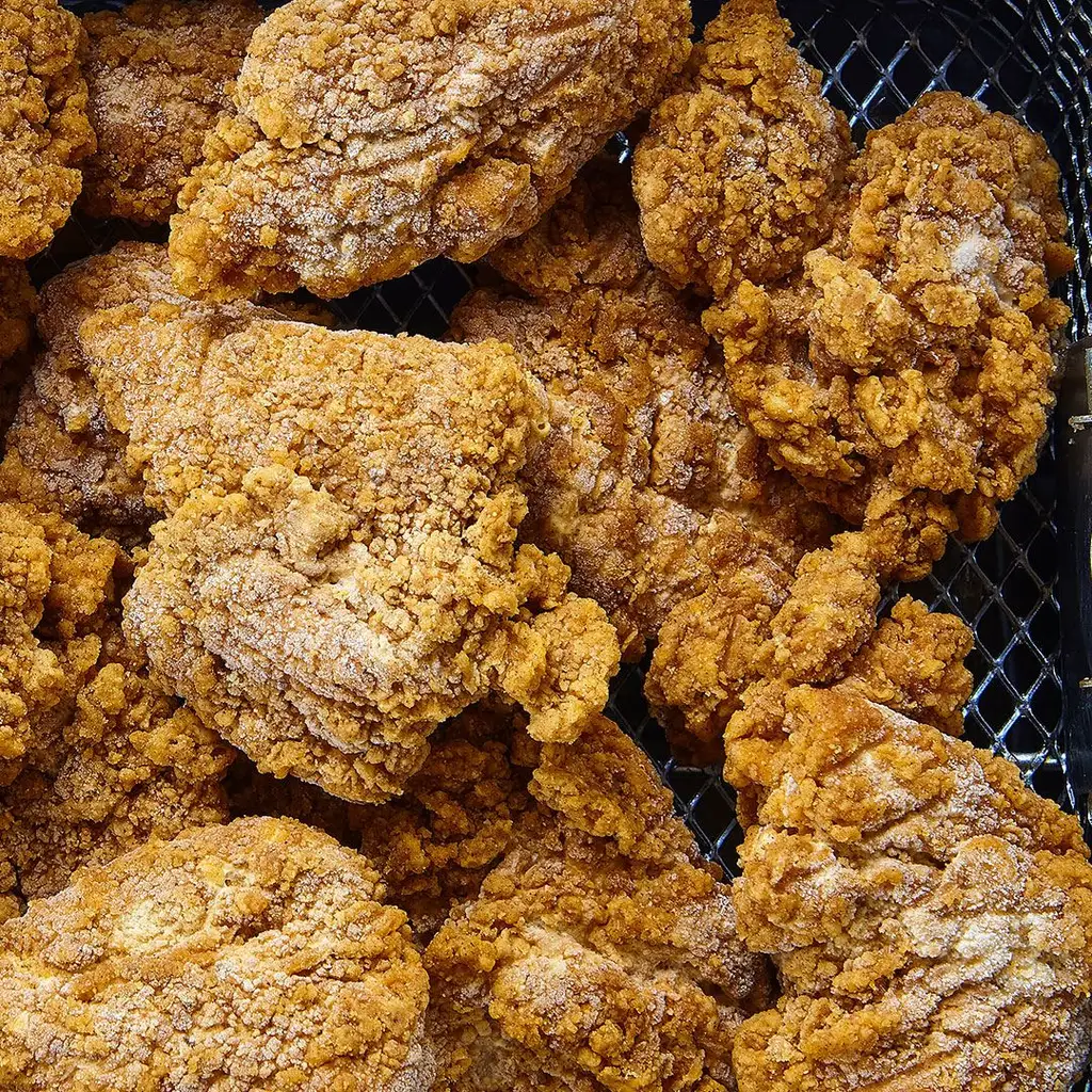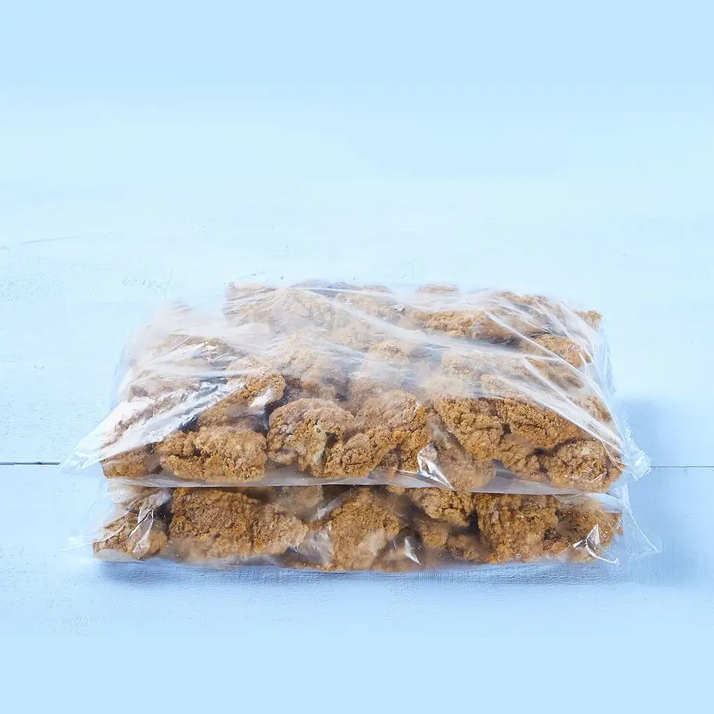 Breaded boneless chicken thigh chunks, fully cooked (seasoned)