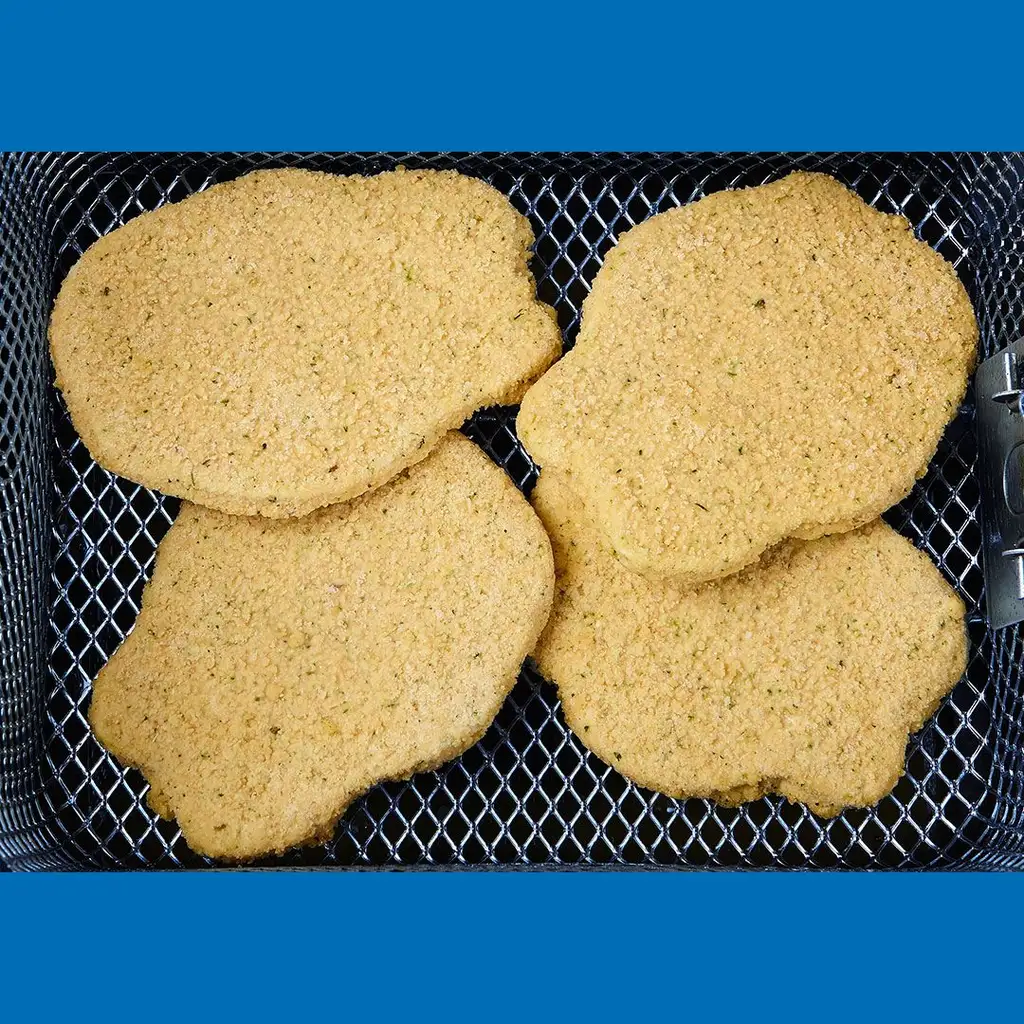 These breaded chicken schnitzels made with white and dark meat are uniformly sized for better cost control. Delicious served Parmigiana-style with pasta, they fill a plate nicely.
