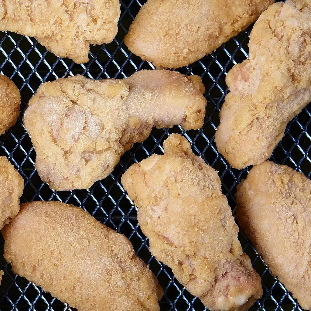 Chicken wings coated with fine breading, deep fried for best results. Uncooked wings are a great choice for cooks who want supercrispy wings with a nice appearance, and complete control of the cooking process in the fryer.