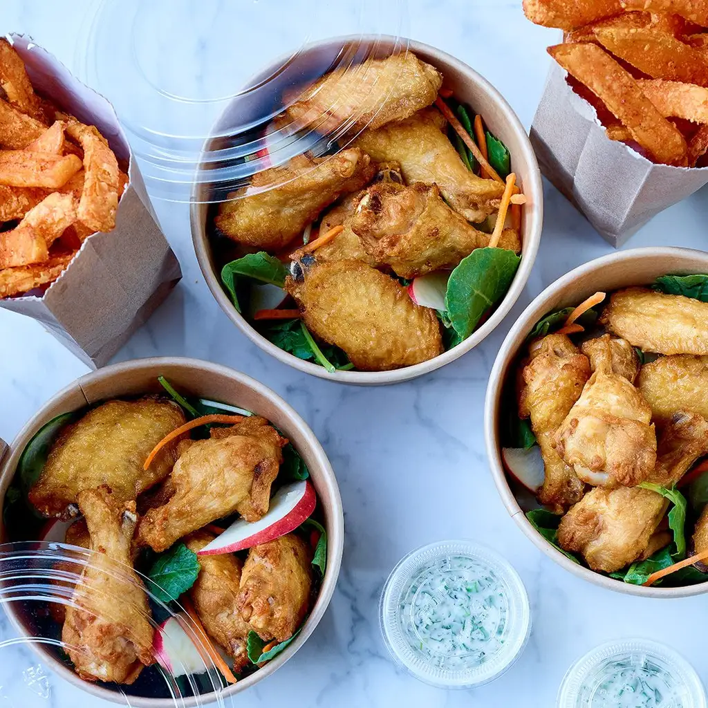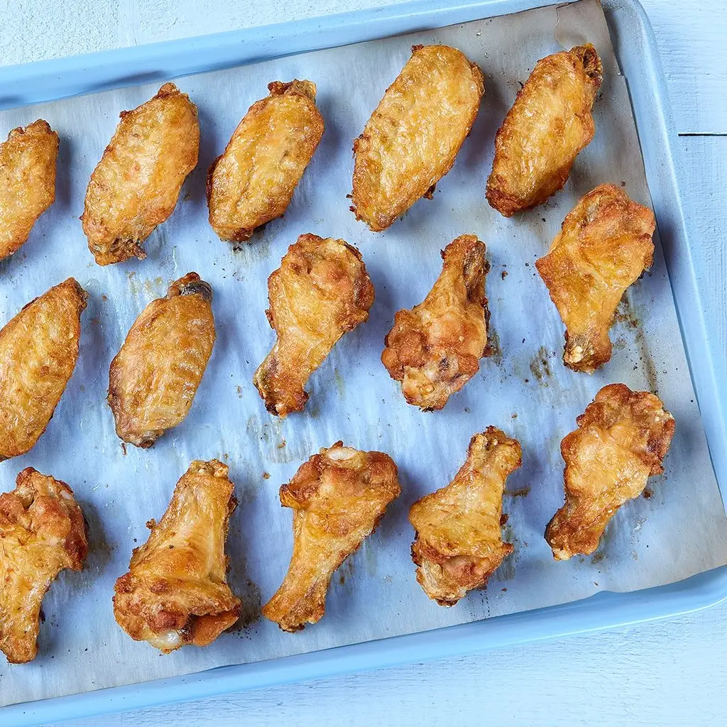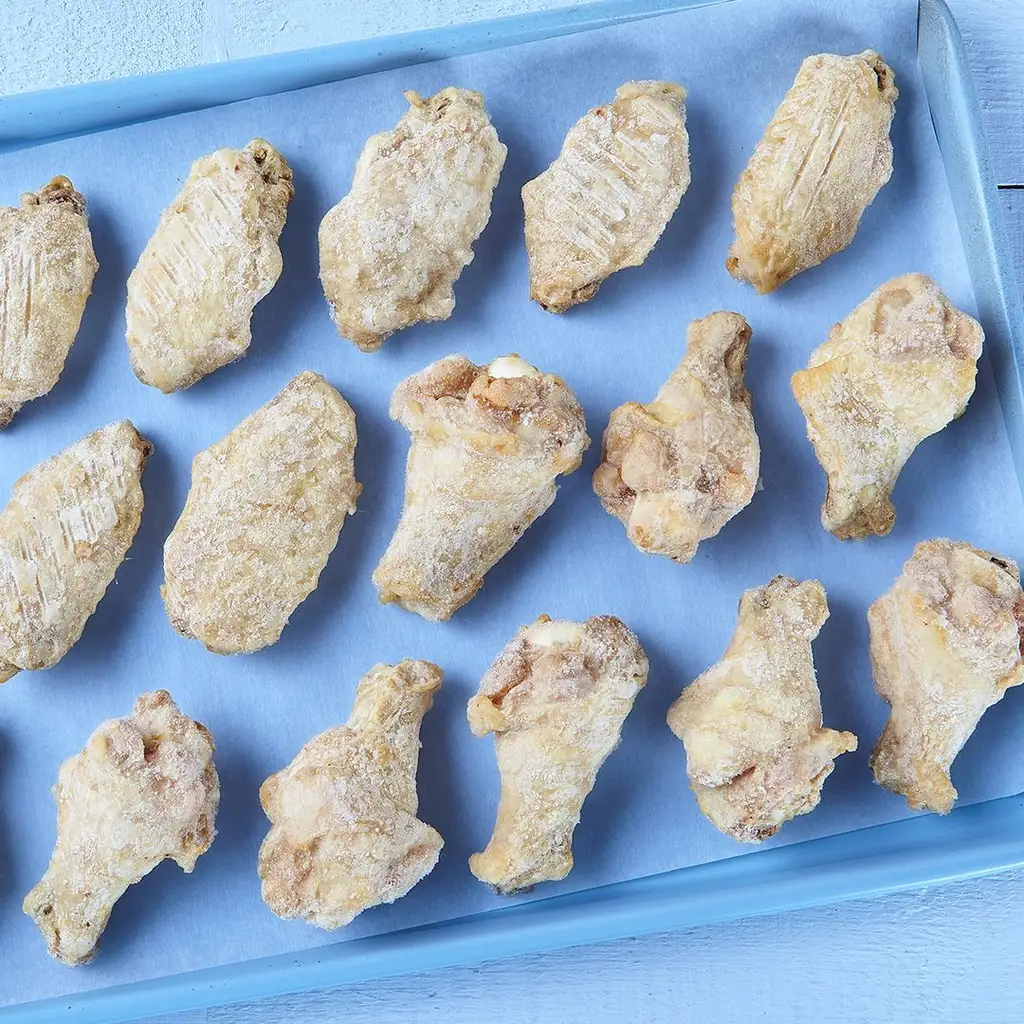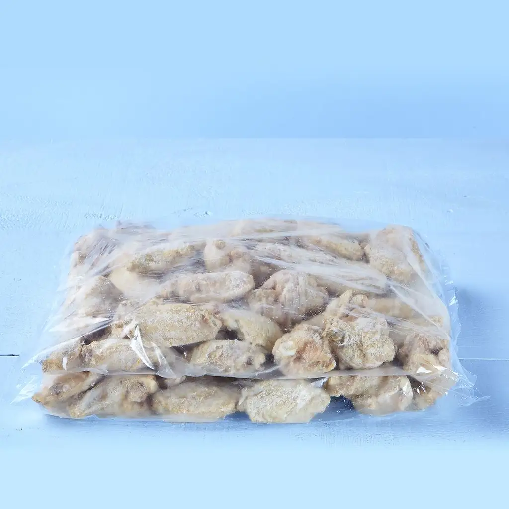 Large chicken wings ready in ± 6 minutes (in the fryer) straight out of the freezer. Coating free so customers can choose their sauce. Tip: sell wings by the pound rather than by the unit. Serving suggestion: serve as a combo with a cold beer and choice ofsauce.