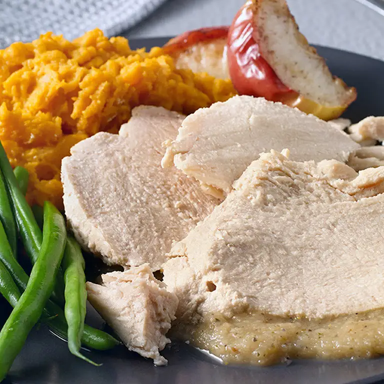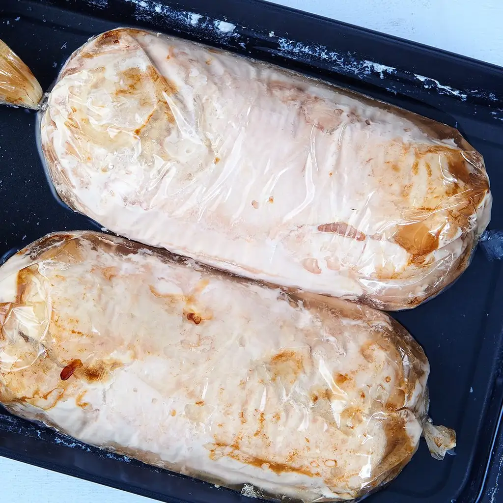 Create succulent dishes with these roasted deboned turkey breasts. This product, with no added salt, is packed in a cooking bag for rapid cooking and weighs only 2.5 kg to make things faster and more efficient in the kitchen.