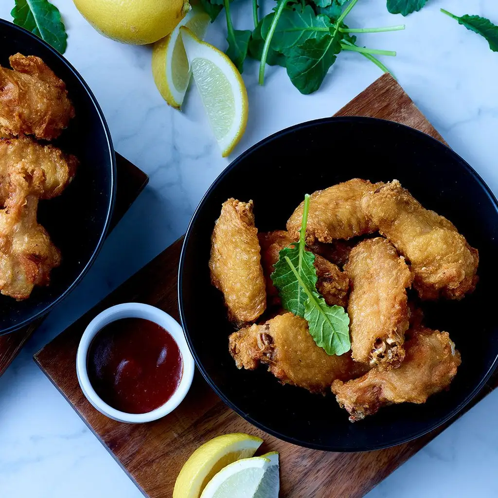 We're particularly proud of our chicken wings. They're fully cooked, so all you have to do is reheat before serving. From the fridge to the table in only a few minutes.