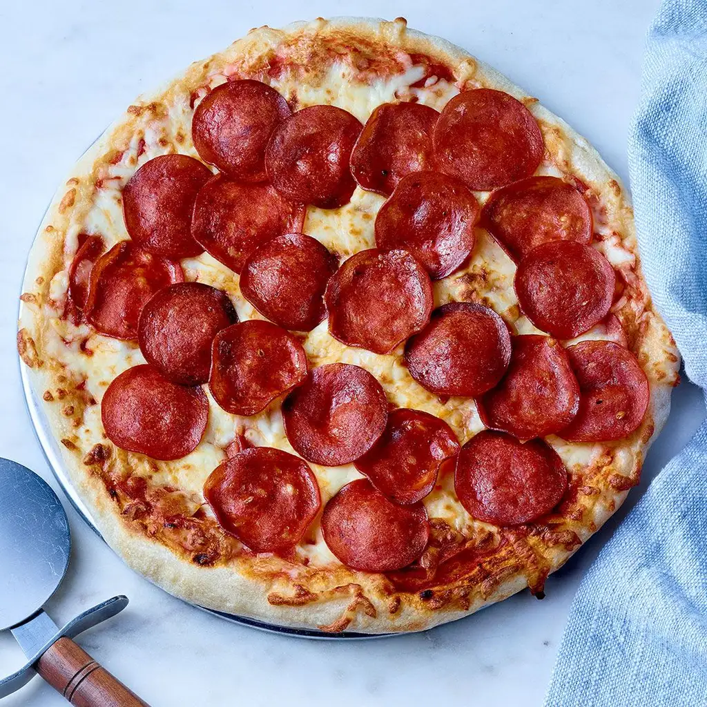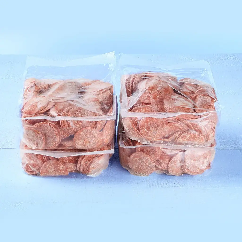 Bring out the best in your pizzas with Olymel 2.2" Original Pepperoni that goes well with any sauce. Frozen and sliced, it has along shelf life and makes preparation easy.